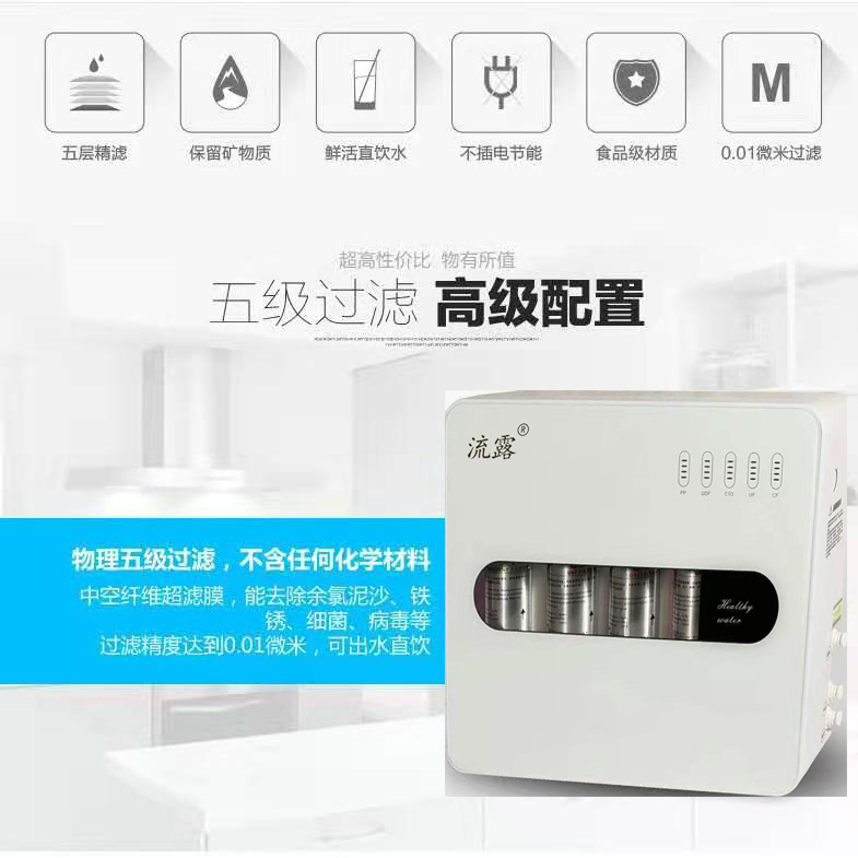 2、 本機采用五級過濾,優點是即插即用,不用電,無廢水。