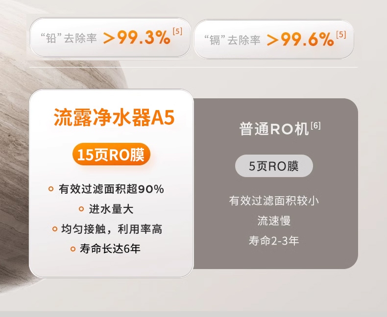 流露A7反滲透凈水器RO膜800G實(shí)測超1000G母嬰直飲1380元